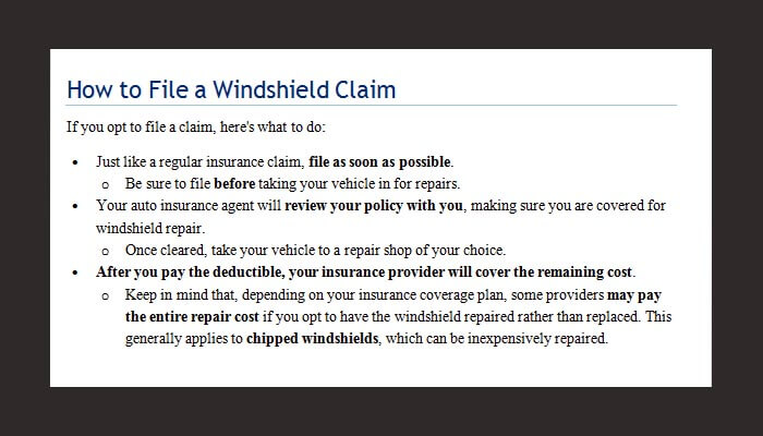 When you’re preparing to submit a claim to get your broken or chipped windshield repaired, you’ll need to provide some basic information: